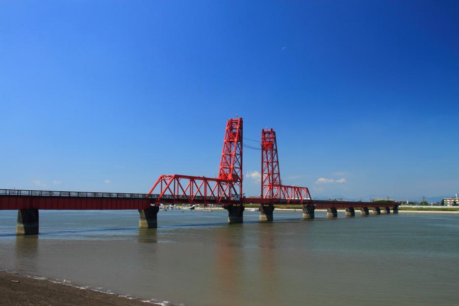 昭和10(1935)年旧国鉄佐賀線の敷設とともに、九州最大の河川「筑後川」の河口付近に架設された東洋一の可動鉄橋。現存する昇開式可動橋としては最古のものです。